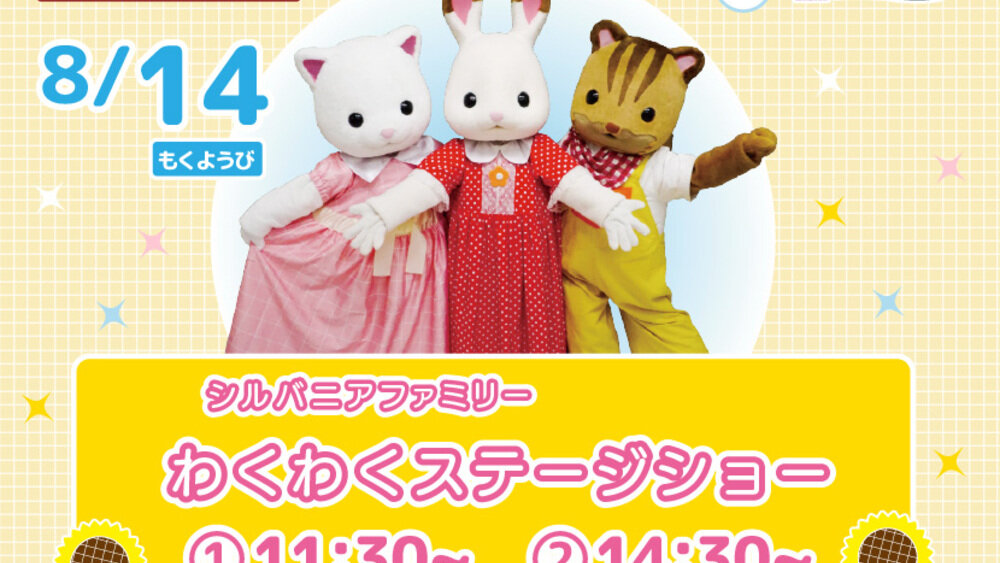 The show on Thursday, August 14th will feature the main characters: “Flare, the chocolate rabbit girl,” “Ralph, the walnut squirrel boy,” and “Laila, the Persian cat girl.” Children will enjoy watching the singing, dancing, and riddles.